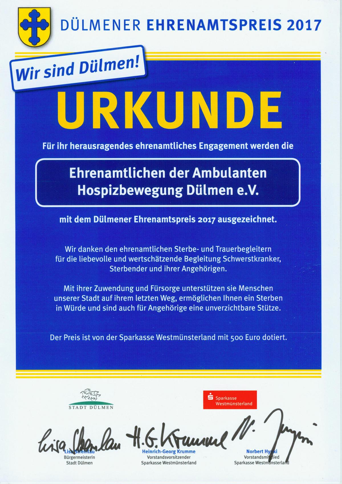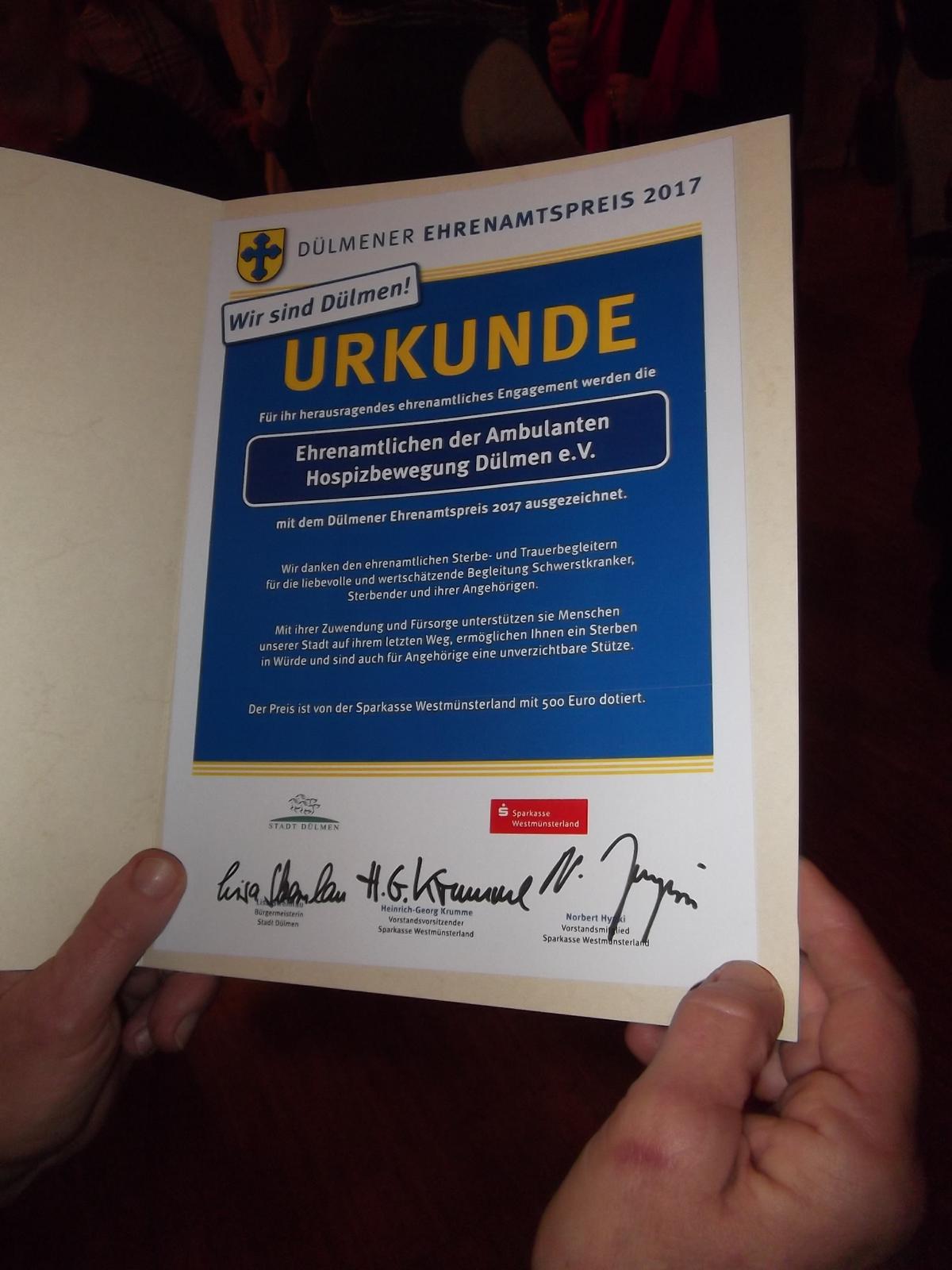 Für den Gruppenpreis hatte die Jury die Ehrenamtlichen Mitarbeiter/innen unserer Hospizbewegung ausgewählt.